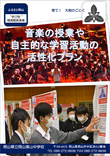 岡山操山高等学校との併設型中高一貫教育校として、特色ある教育活動を展開することにより、将来、グローバル社会で活躍し、その発展に貢献する「高い志」「確かな学力」「豊かな心」を持った生徒の育成を目指します。