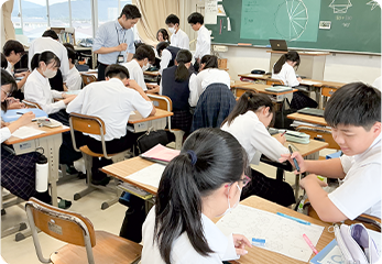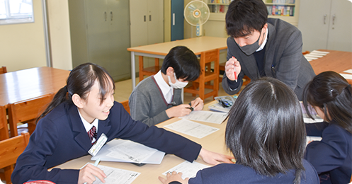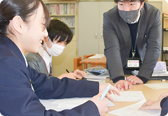 中学校と高等学校の教員とのティームティーチングにより、中学校の学習の枠を超えた生徒の興味深い内容や題材を通して、学問の奥深さや面白さを体験できる授業が選択できます。一人一人の知的好奇心が喚起され、広く深く学ぶことができます。