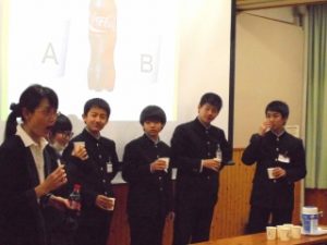 12月12日(火)に2年生を対象に健康教育講演会が行われました。野菜ソムリエ・食育プロデューサー江草聡美先生をお招きして「食事と健康」についてお話を聞きました。自分の体を健康に保つのは日々の食事であること、食についての知識をもち、その上で何を口にするのか自分で考えることなど体験や実験を踏まえながらお話しくださいました。楽しく食の大切さを学びました。